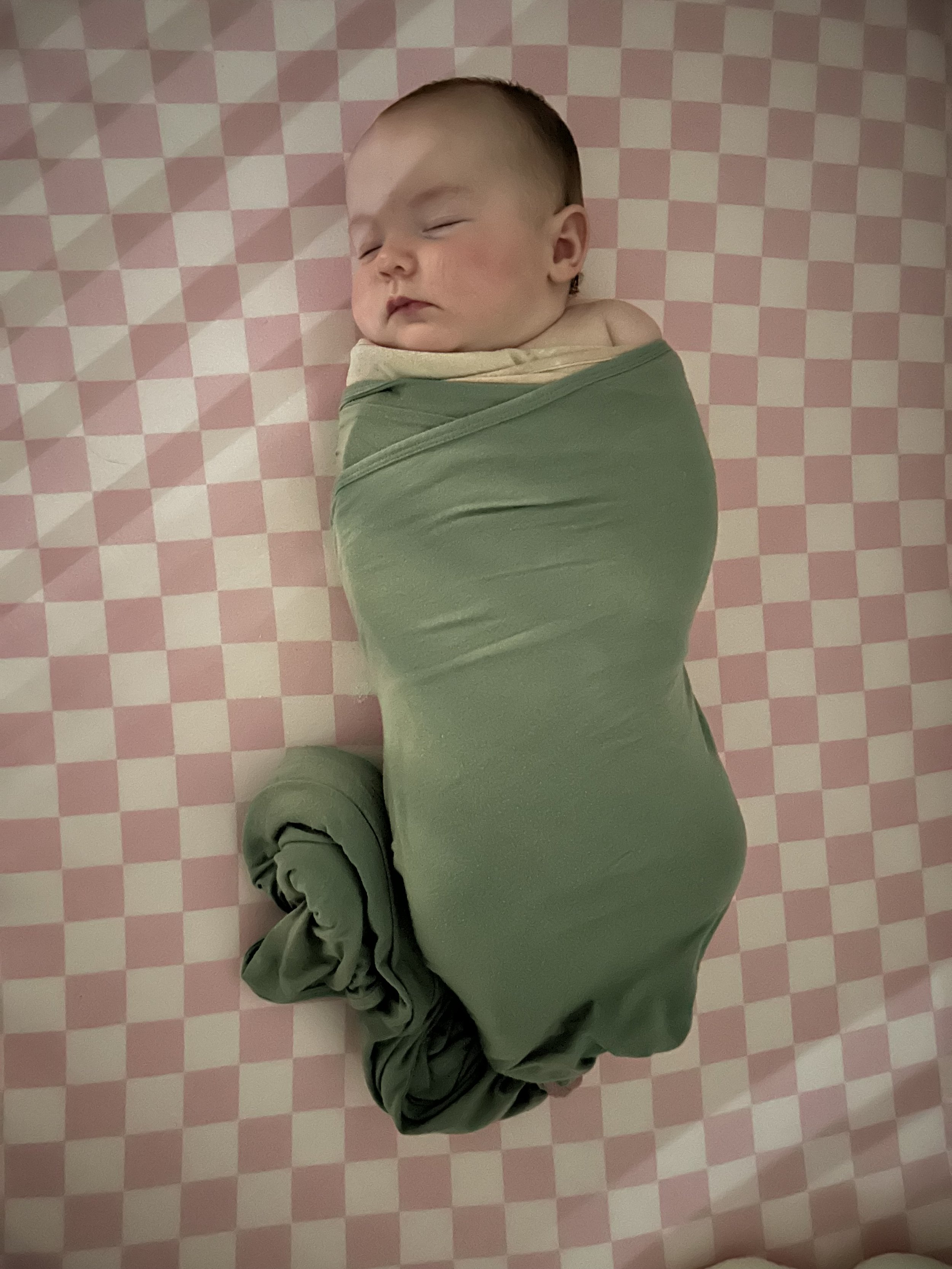 Brooke swaddled, we did get her transitioned into a sleep sack around 4.5 months!
