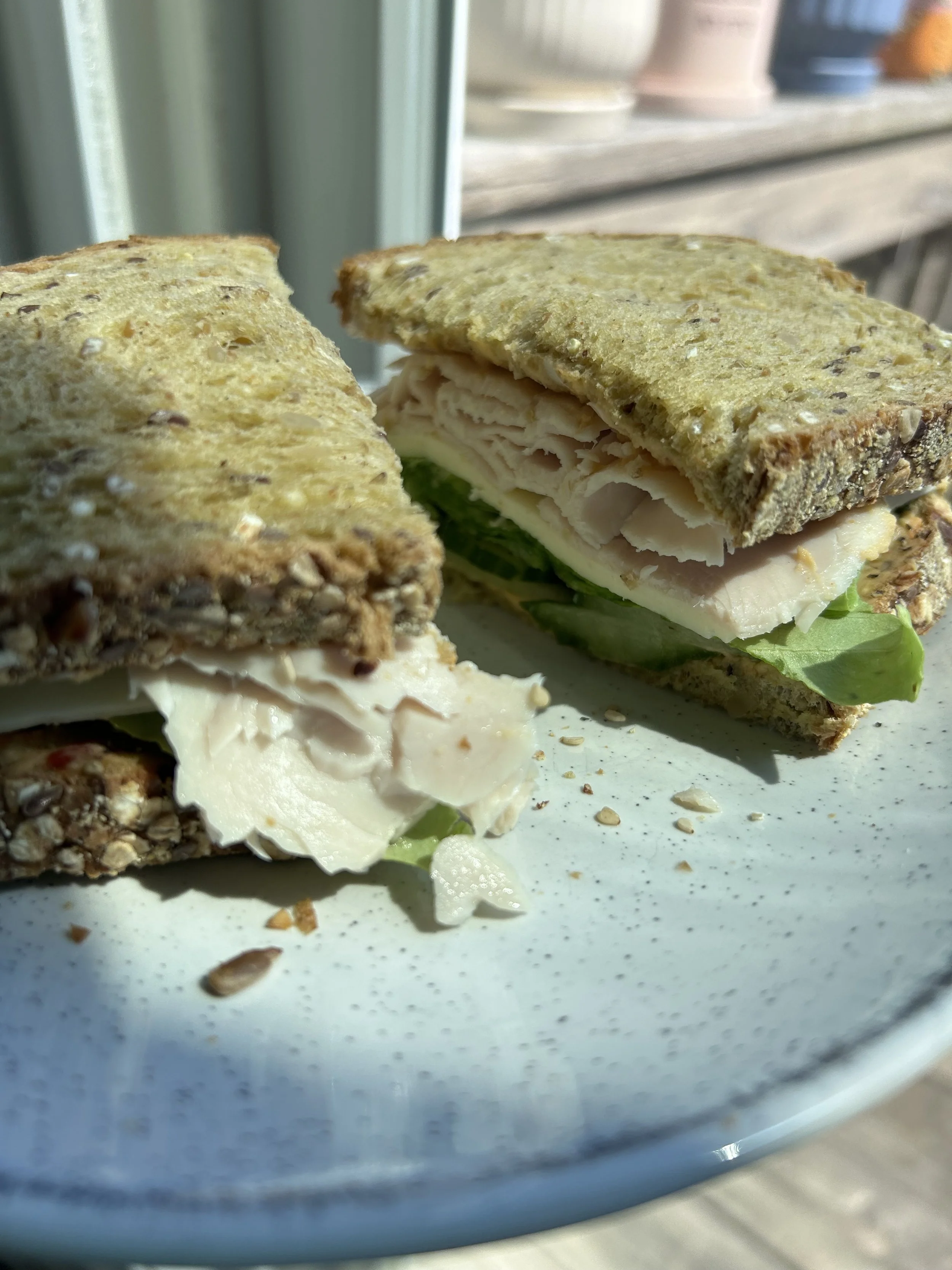 Avocado Bread, Roasted Red Pepper Hummus + Turkey Sandwich